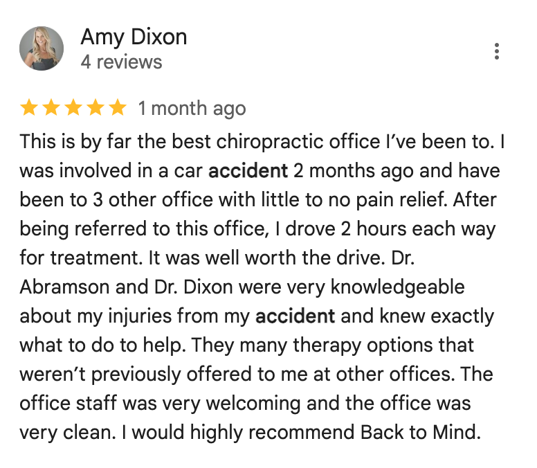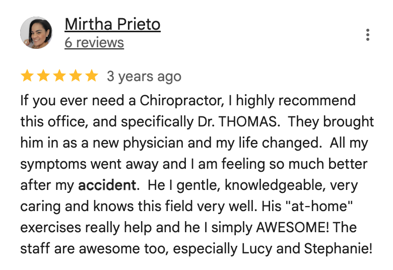 25 Years of experience treating patients with whiplash, neck pain, back injuries, and post-accident trauma.